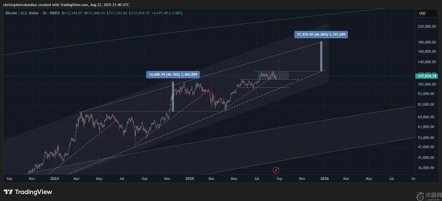 一位备受关注的加密货币分析师曾准确预测了 2021 年市场崩盘,他表示,比特币(比特币) 的价格到今年年底可能会达到 180,000 美元。