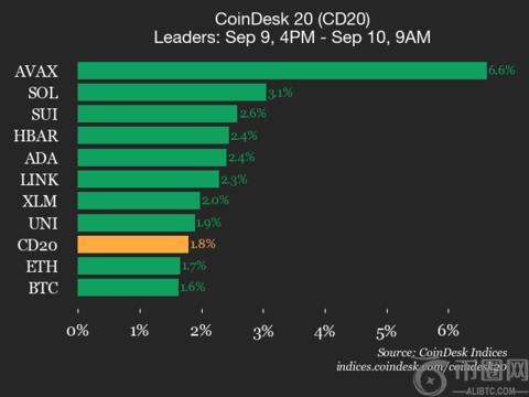 领导者:AVAX(+6.6%)和 SOL(+3.1%).落后者:POL(+0.0%)和 AAVE(+0.4%).