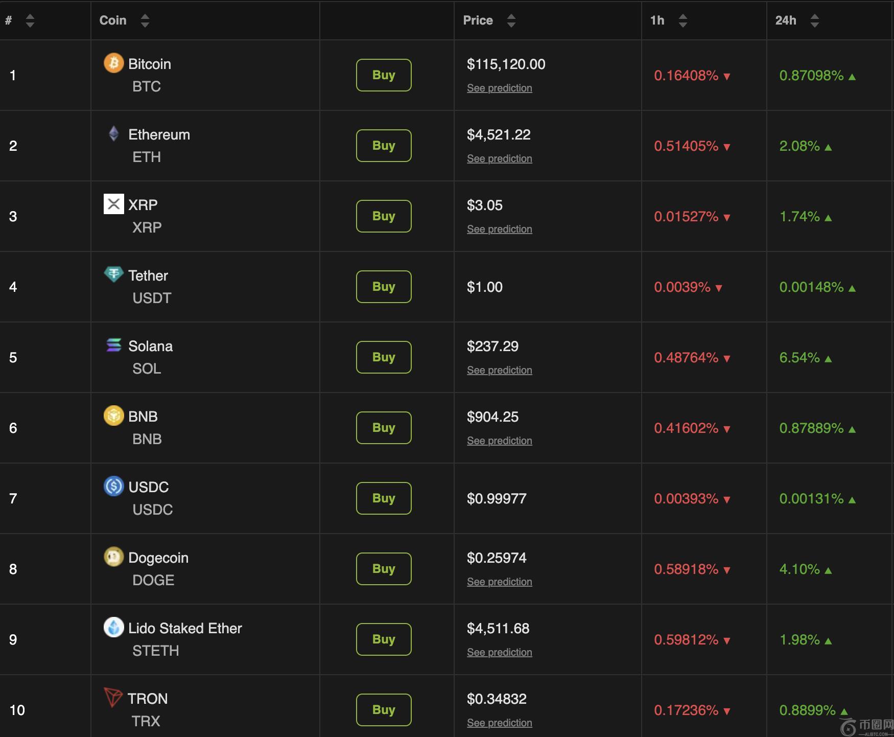 BeInCrypto市场 数据显示,过去 24 小时内,加密货币市场上涨1.34%,前十个币种全部为绿色。