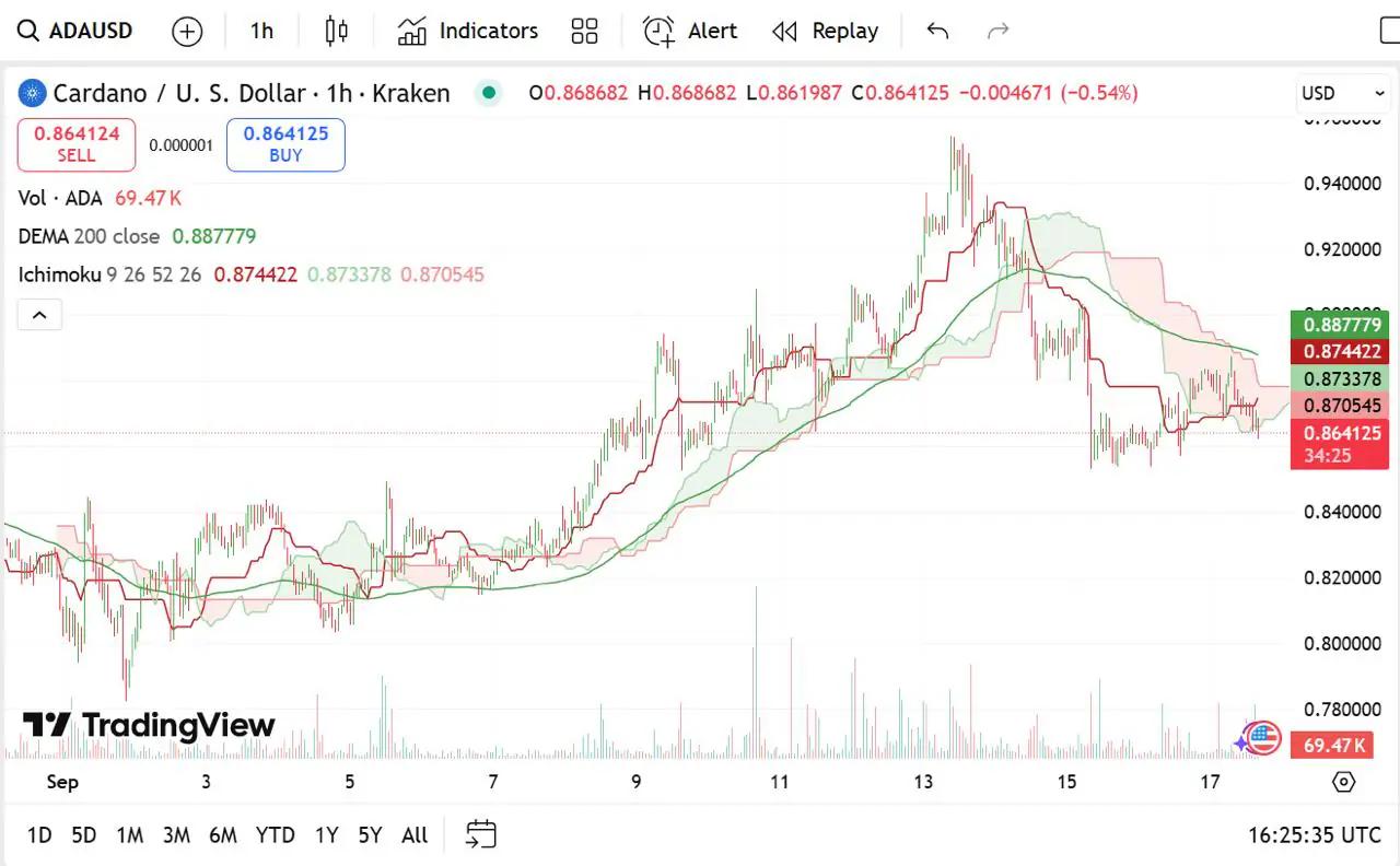 卡尔达诺目前价格为 0.8664 美元,24 小时内上涨 0.08%。市值