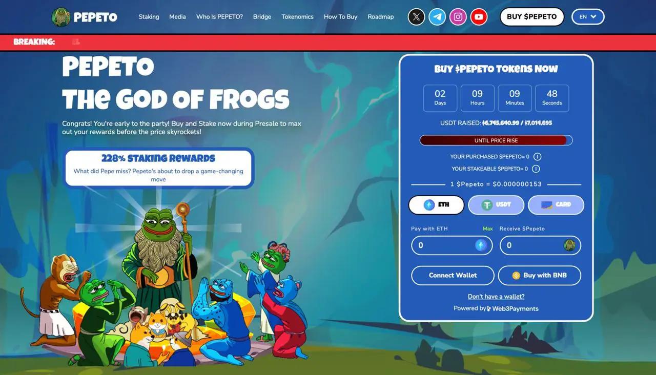 如果说有哪个名字能在 2025 年超越旧有的 meme 群体,那一定是人们会炫耀自己早早发现的。认真的投资者不会坐视不管。现在就以 0.000000153 美元的价格买入 Pepeto,这将是你有史以来见过的最低价,不要错过。势头会迅速复利;当基本面和市场叙事一致时,犹豫几乎不会有任何回报。