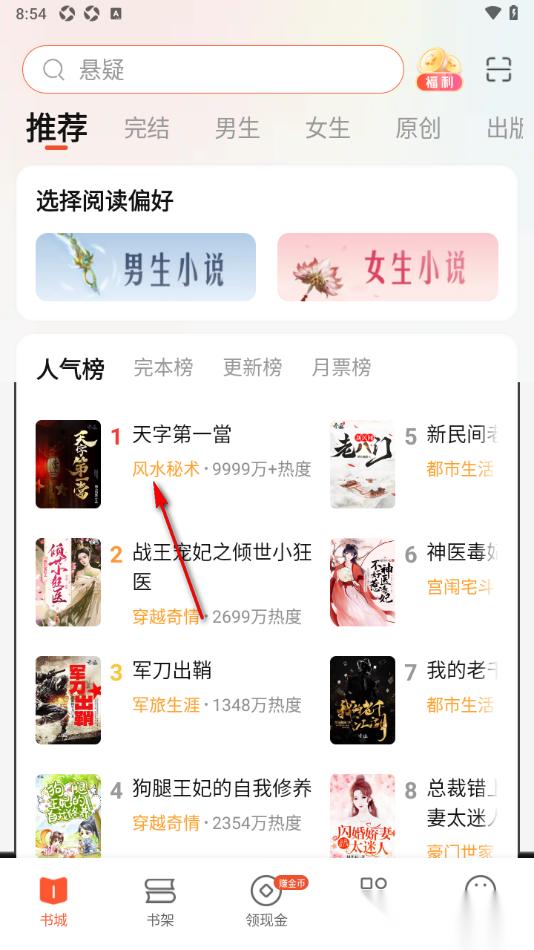 1.来到当前打开的奇迹免费小说APP操作界面中,需要找到自己感兴趣的小说,将其点击打开。