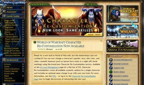 想拥有全新的造型而理发店无法满足你的要求?现在您可以通过全新的角色定制服务修改角色的性别、脸型、肤色和其他的角色外形要素(例如牛头人的角和暗夜精灵女性的面纹)了!您可以在帐户管理界面以15美元的价格进行角色修改,同时还提供可选的角色名字修改服务!关于更多信息请查看FAQ或直接进入角色定制页面开始创造一个新的自己!