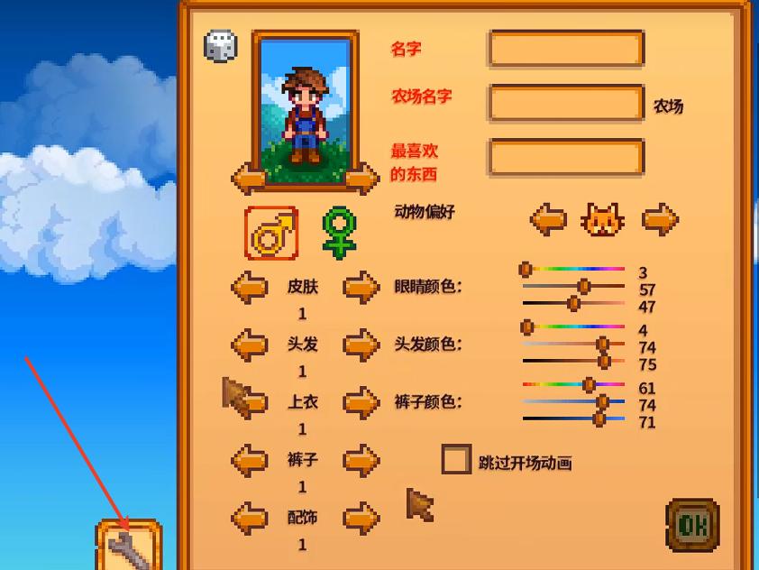3、进入游戏,农场名字以及偏好无法修改,其余的可以在法师家的地下室进行修改。