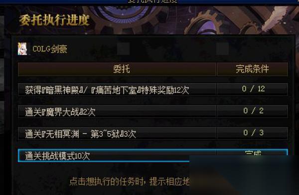 选择好了委托任务之后,点击执行委托即可开始任务,注意委托任务是角色绑定,只有当前角色才可以完成所选委托任务