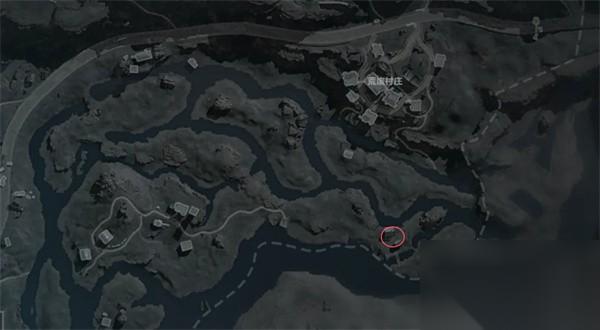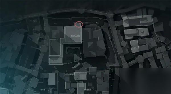 靠近边界小屋附近区域,沿小径前进后左侧即为密码门位置