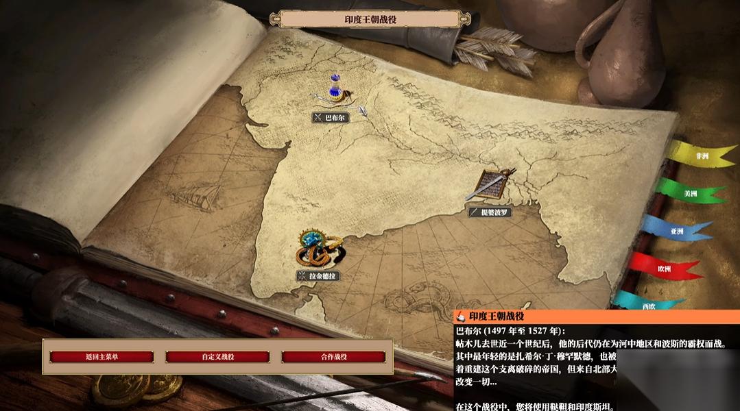 巴布尔战役是以莫卧儿帝国创始人巴布尔为主线的历史战役,该战役包含五关,难度梯度设计合理,重点考验资源调配与兵种克制能力。战役中巴布尔的母亲忽格鲁特作为特殊单位登场,其高防御与攻击属性在前期关卡中具有战术核心价值。