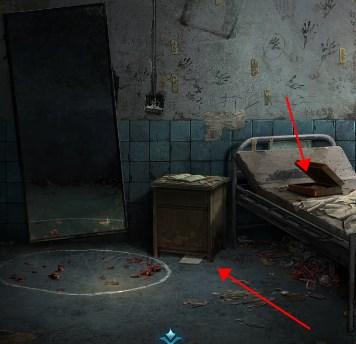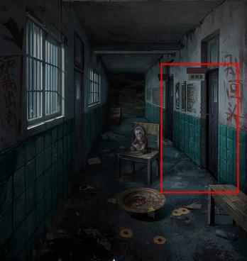 8.在走廊中找到娃娃,用剪刀剪开娃娃身上的鱼线,进入探视室后查看物品架的病历获得线索
