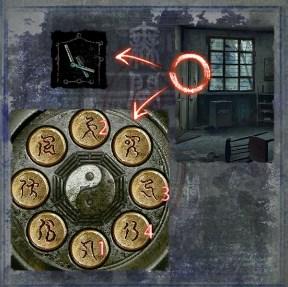 9.观察病历右下角的符号,在柜子左柜门的密码锁处根据图中顺序点击,获得吊扇