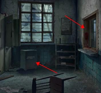 15.回到大厅,把申请表放到护士前的纸盒中,之后回到上吊妹子的房间,通过眼睛中的提示打开保险箱