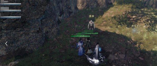 先去云鹤村的后山,找到身形魁梧、棕色毛发的猿猴人形NPC——猿神。