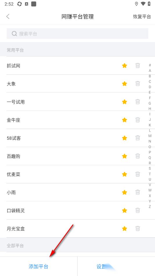 3.这时候用户可以在页面底部的位置找到【添加平台】按钮即可进入。