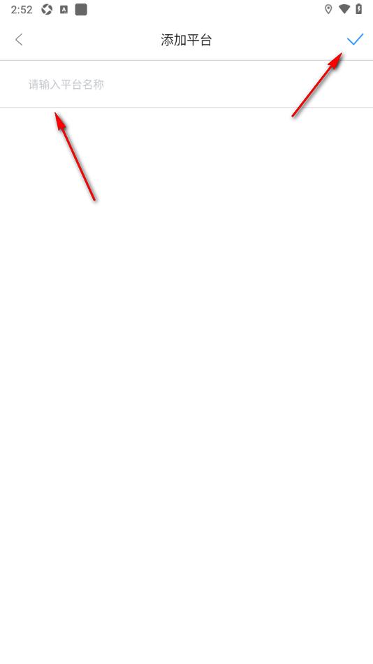 4.在当前打开的页面上,只需要输入平台名称信息,再点击右上角的【√】按钮即可添加平台。