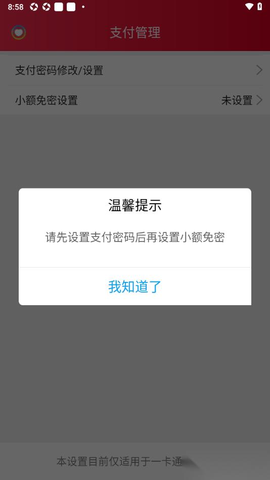 4.这时候用户可以在弹出的窗口中选择【小额免密设置】选项,将其点击即可设置。