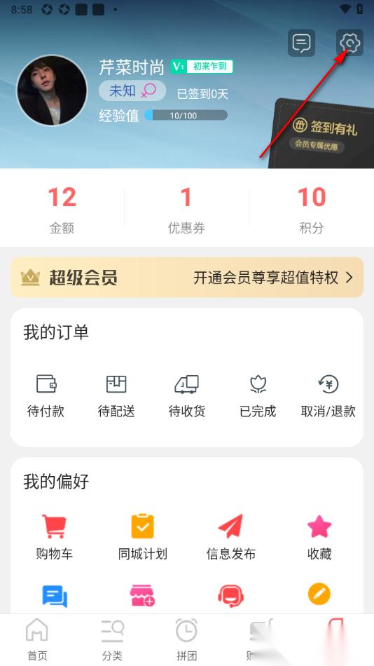 2.当我们进入到页面之后,在页面上方右侧的位置即可查看到显示的齿轮状的图标按钮,将其点击打开。