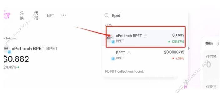 /uniswap主界面交易找不到,要去搜索代币,搜索Bpet,只买这个,买XPET没用,还得去换非常麻烦!