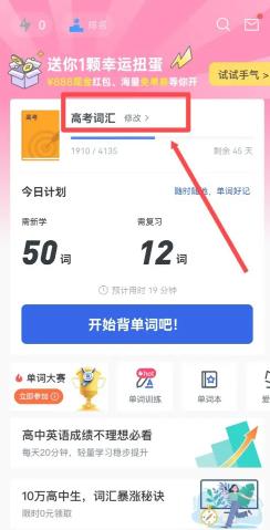 1.打开百词斩App首页,点选中间【修改】。