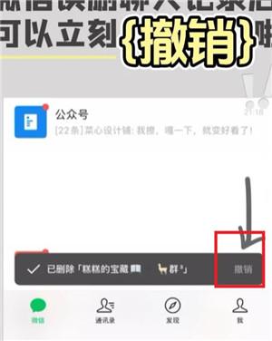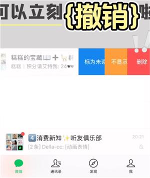 当你左滑删除之后,下面就会立马出现撤销按钮,点击撤销就可以恢复聊天记录了,如图所示: