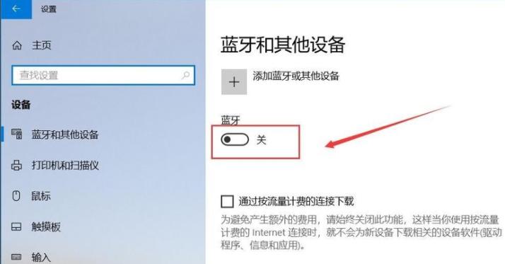 3、进入“设备”后就可以看到蓝牙开关,如果是关闭的就点击它来打开蓝牙功能。