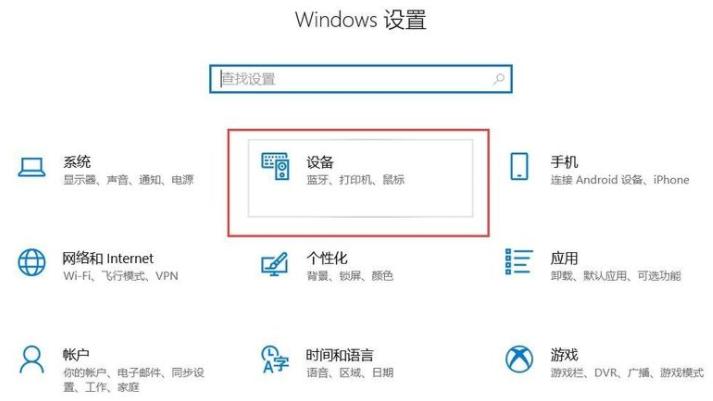 2、进入Windows设置后,再点击“设备”。