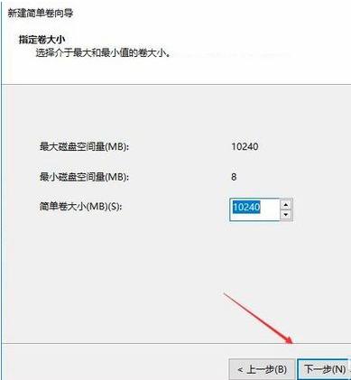 4.输入需要新建磁盘的大小,这里输入的是10240,也就是10G大小,如下图所示。