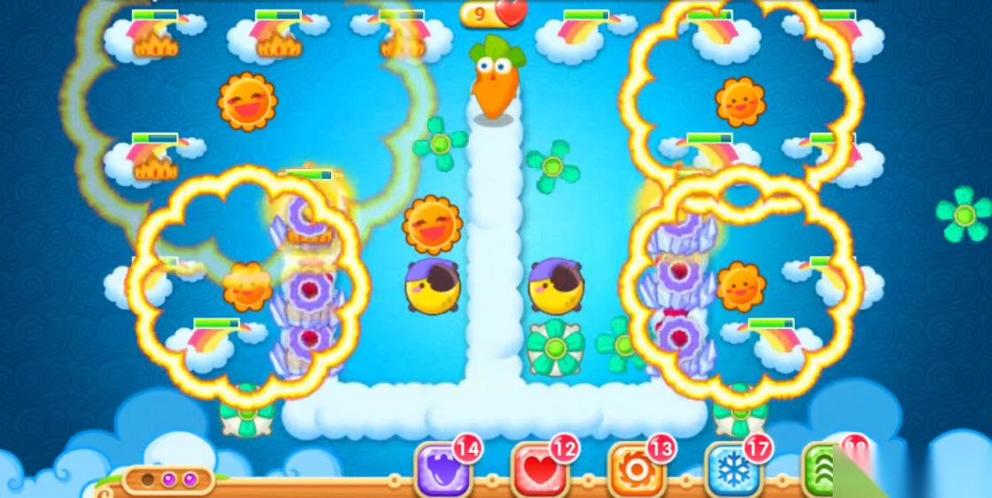 对付最后一波兔子时,记得多补充对空的五角星炮塔,它们打飞行兔子特别给力。如果金币够用,尽量把所有炮塔都升到满级,这样火力才够猛。左下角和左上角也要补一些拳套和五角星,确保没有漏网之鱼。障碍物全清完后,炮塔的摆放位置就非常关键了,尽量让它们的攻击范围覆盖所有路线,这样兔子就没机会靠近萝卜啦。