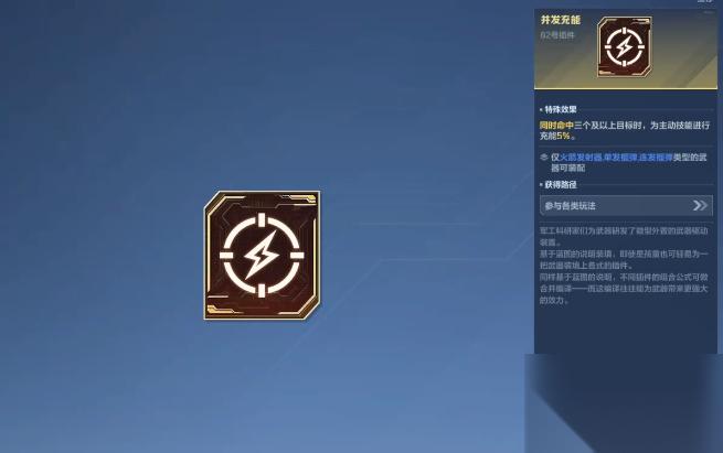 游戏里玩家可以使用的枪械配件非常多,其中并发充能是比较推荐的,使用这个配件之后可以同时命中多个目标,每一次使用之后还可以让主动技能充能5%,但这种配件只适合火箭发射器或者是连发榴弹类型的武器,快速装填试用所有的武器,想要提升换弹速度的玩家,可以使用这个配件,让整个弹夹的容量减少10%,这样换弹速度就能增加27%,等于在同一时间内玩家可以射出更多的子弹。