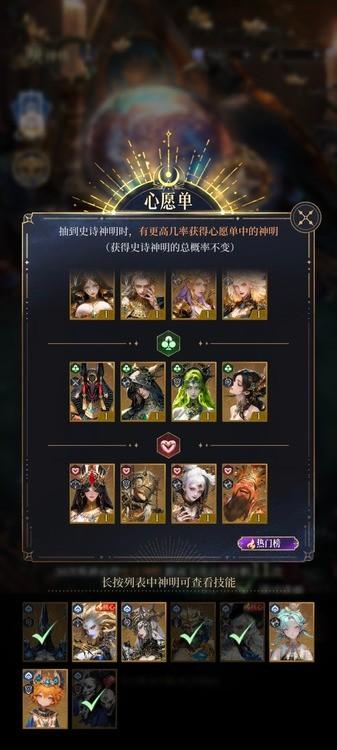 黑桃个人推荐赫卡忒(黑桃大C,巢穴必上,推图神器10级启用,目前前期略微乏力,中后期依旧是推图大C),波塞冬(不用多说,你游唯一真神,前提是10级神器以后,没开10级神器以前太乏力,神龛也能用),磨磨斯(不死,群体嘲讽,回血,四系最硬坦之一,神龛也能用),涅墨西斯(前期开荒用,中后期竞技场用,因为三相被削过,所以巢穴也得上),海拉美杜莎都是后期四五队的C,海拉绑女娲强度应该还是可以的