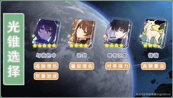 光锥【与夜色中】不仅可以提供大量的双暴加成,而且可以给速度值较高丹恒带来高额的战技与终结技增伤,是丹恒光锥的最优解。