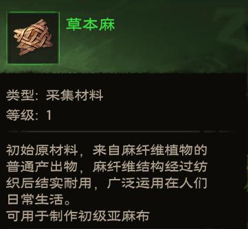 1、草本麻:冲冲熟练度,初级亚麻布的原料