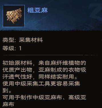 2、粗亚麻:冲冲熟练度,中、高级亚麻布的原料