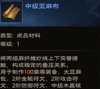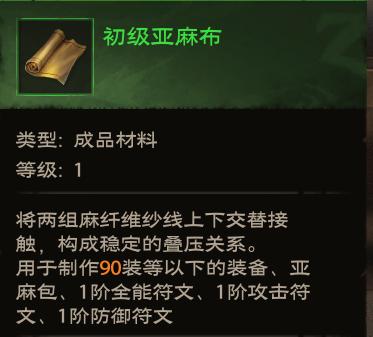 1、初级亚麻布:前期价值较高,扩充背包和装备赋能的原料