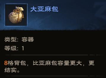 5、大亚麻包:就比亚麻布包大,从开始到现在都没有啥用的东西,甚至装备后还空了一大截没多少东西放(吐槽)