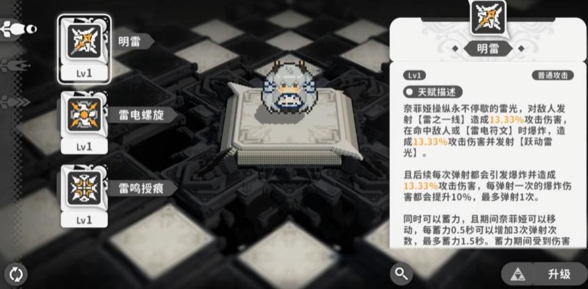 奈菲娅的普攻叫明雷,是三段式的雷属性攻击,看起来普通但藏着细节,前两段普攻主要是打基础伤害,关键在第三段,命中敌人后能叠上专属印记,有了这个印记后续她的雷属性伤害会明显提升,等于给敌人上了个易伤buff,更实用的是普攻能蓄力,蓄力后伤害更高,而且蓄力的时候还能自由移动,不用像其他角色那样站着不动硬扛伤害,打那些会频繁放技能的敌人时,边挪位置边蓄力普攻,既能输出又能躲伤害,灵活性特别高。