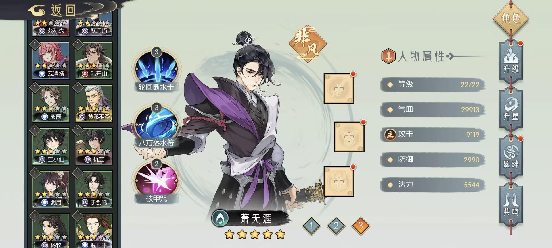这里主要靠角色高星之后的威能提升和水灵气的数量。
