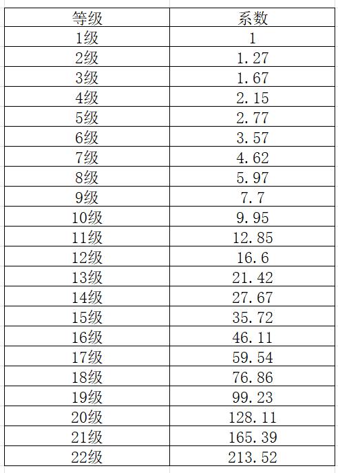 角色基础法力可以查看最下方的附表,然后根据等级乘以相应的系数,就可以得到角色的基础法力了。